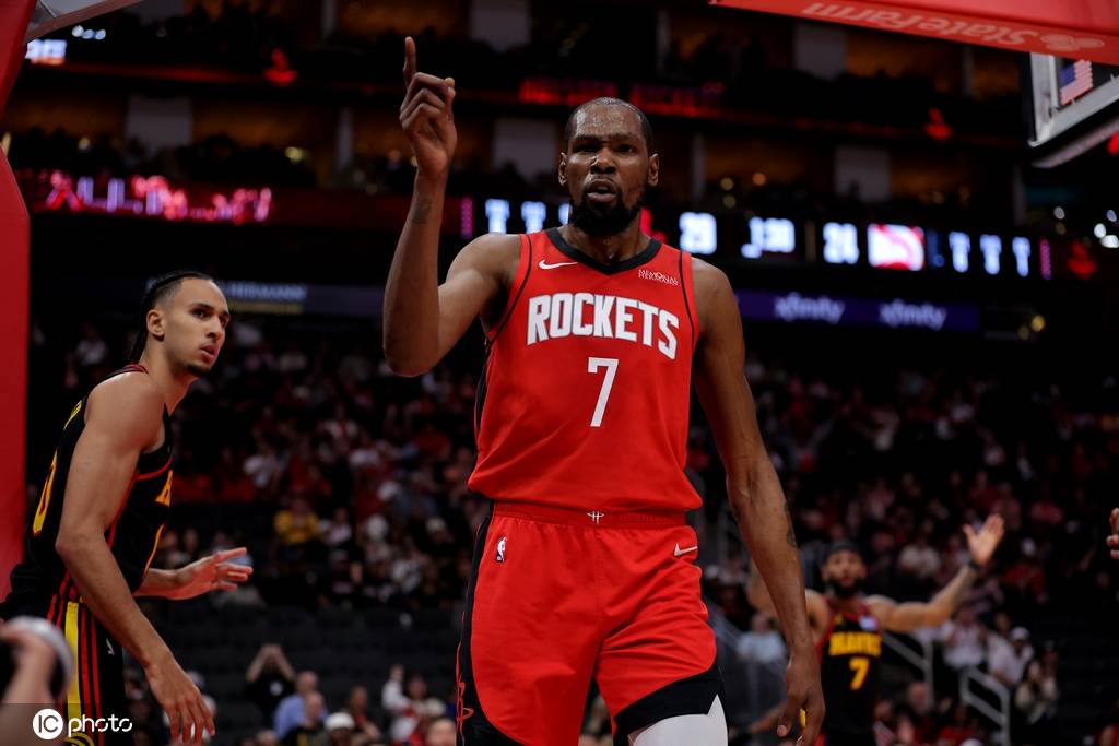 火箭队首发:凯文-杜兰特、小贾巴里-史密斯、阿尔佩伦-申京、里德-谢泼德、阿门-汤普森